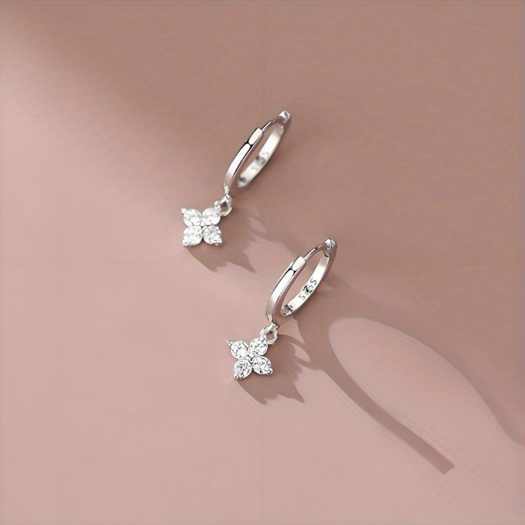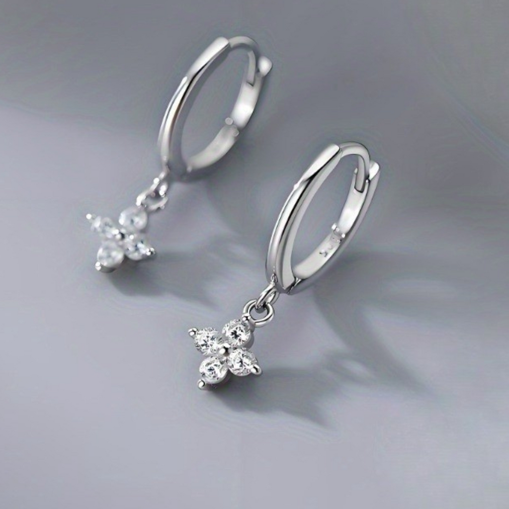 Caravanas en plata 925, delicadamente diseñadas con una flor de zirconias brillantes. Elegantes y femeninas, ideales para dar un toque de luz y sofisticación a tu estilo.