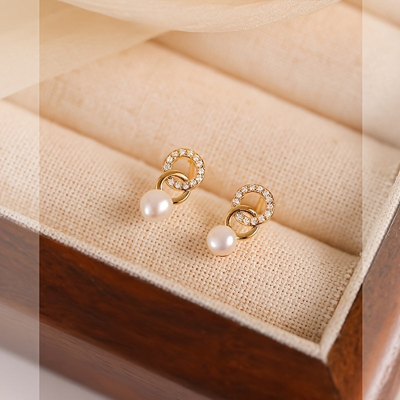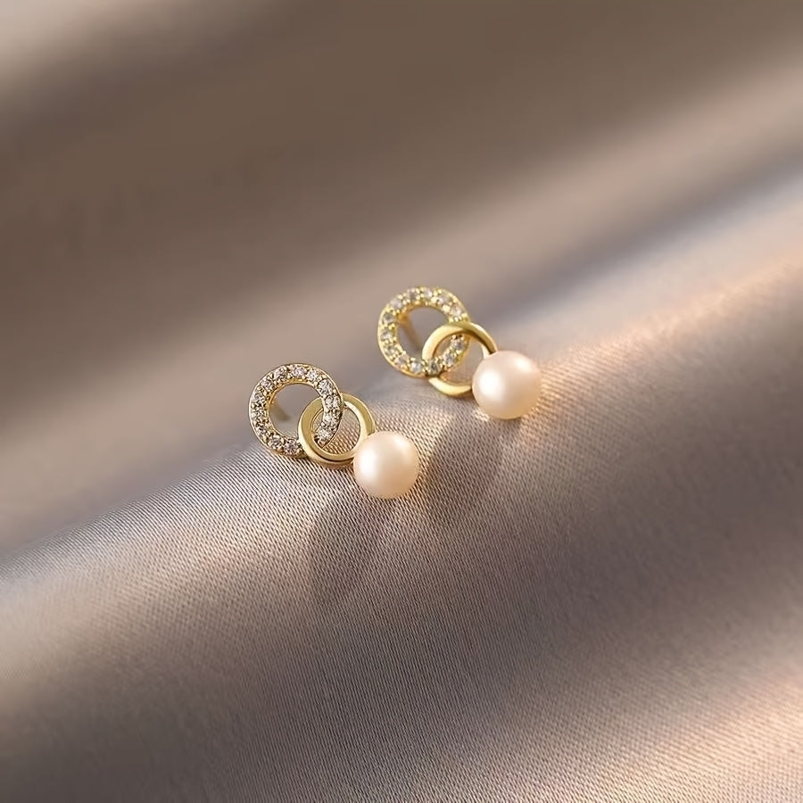 Elegancia atemporal: aros en plata 925 bañados en dorado, realzados con delicadas perlas. Sofisticados y versátiles, el detalle perfecto para darle un toque de distinción a cualquier look