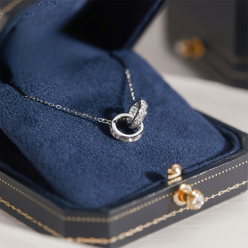 Collar de Moda en Plata 925 con dije de anillos entrelazados l Símbolo de unión