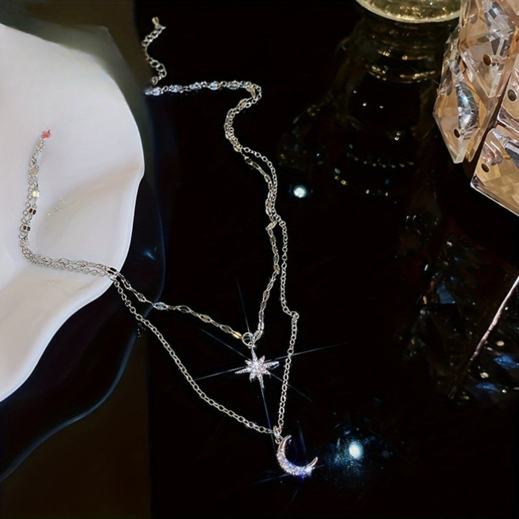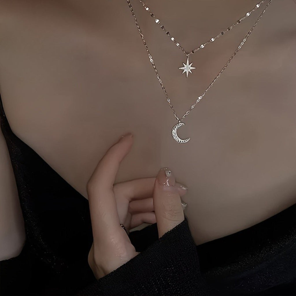 Collar de Moda en Plata 925 con Diseño de Luna y Estrella