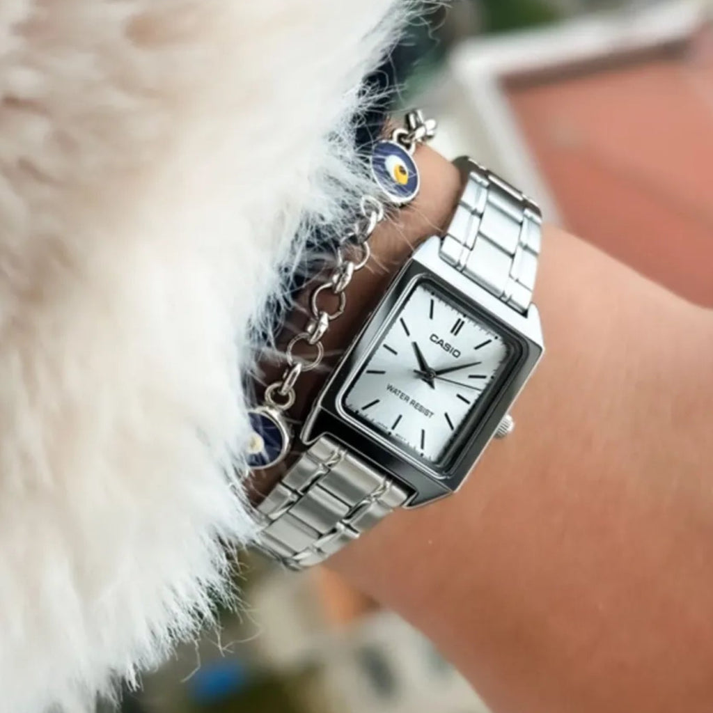 El Reloj Casio LTP es el accesorio perfecto para mujeres que buscan estilo, sofisticación y precisión. Su diseño rectangular minimalista con esfera negra y brazalete de acero inoxidable plateado lo convierte en una pieza versátil, ideal para lucir tanto en el día a día como en ocasiones especiales.