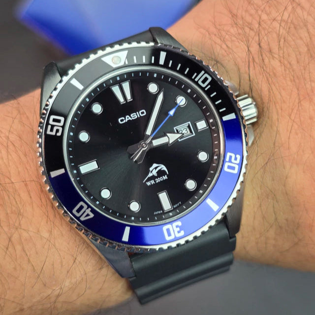 Llevá en tu muñeca la fuerza del océano con el Casio MDV-106 Marlin Diver 🐬. Con su diseño deportivo, bisel giratorio y resistencia de 200M, este modelo es perfecto para buceo, natación o aventuras extremas. Su caja robusta de acero inoxidable, correa de resina cómoda y calendario integrado ofrecen practicidad y estilo. Un clásico moderno de Casio Original con la garantía de precisión japonesa.