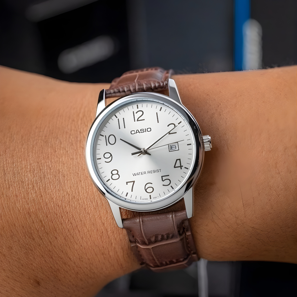 Estilo que marca la diferencia, reloj Casio MTP-V002L- con correa de cuero, esfera elegante, diseño clásico para hombre que posa tan bien en oficina como en salida casual. Resistente al agua, precisión garantizada y calidad Casio